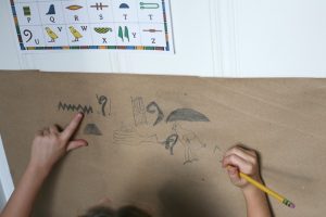ملحوظة: توجد بعض الإختلافات من موقع لآخر بين رموز الحروف ولكن المهم هو تقديم فكرة مبسطة للطفل عن اللغة الهيروغليفية.