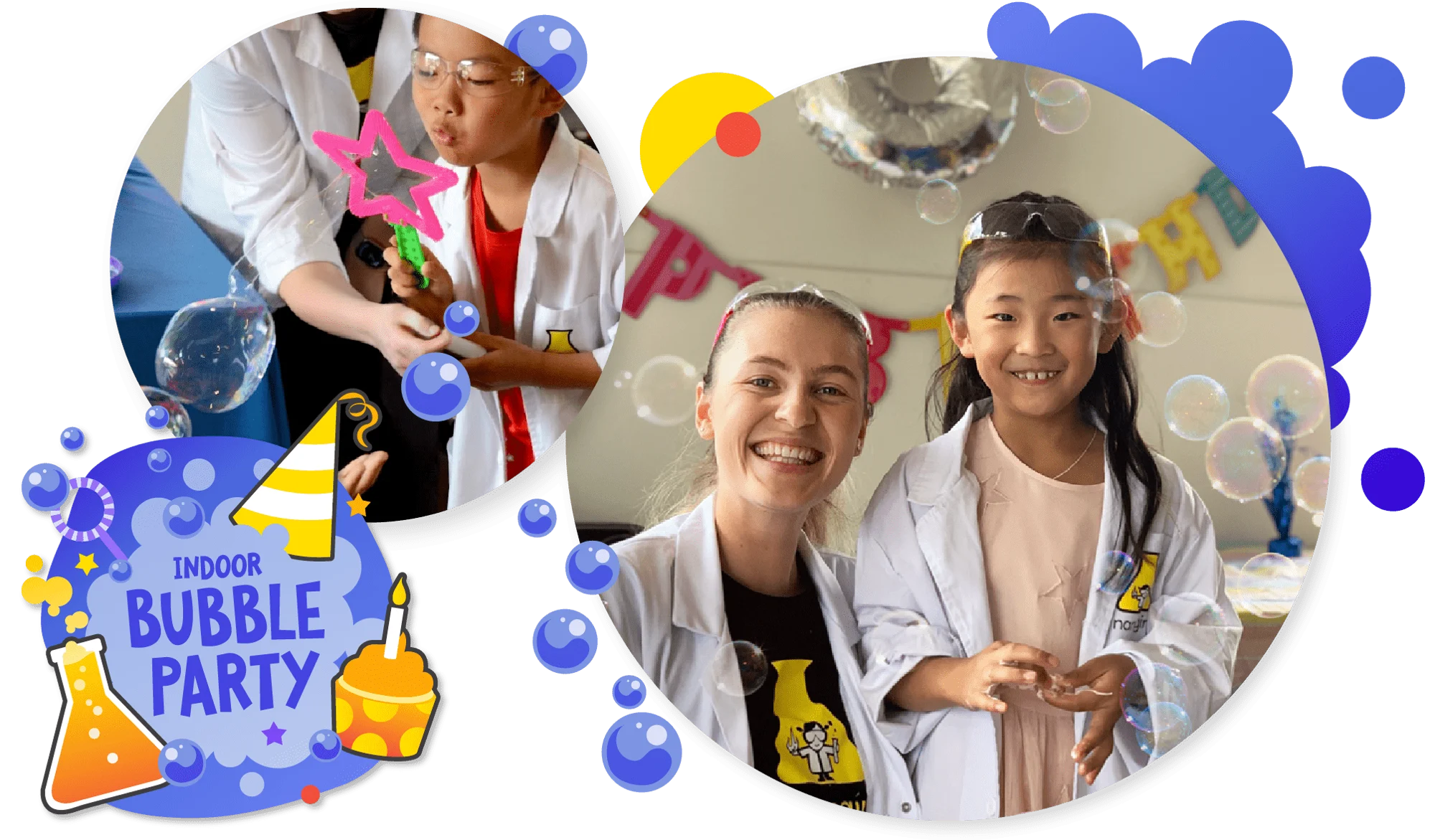 • 1-hour of interactive, indoor bubble birthday FUN with your Edufun Academy scientist!