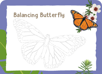 Colour in and cut out this template, then follow the instructions in your book to make your own balancing butterfly.
